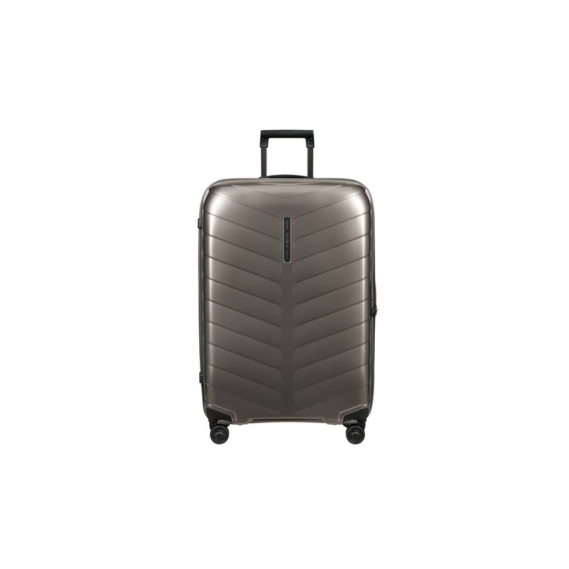 Exterior *Candado TSA integrado *Asa superior y lateral *Spinner 4 ruedas dobles *Ruedas de suspensión amortiguadoras de golpes y sonidos *Expandible *Etiqueta de identificador integrada Interior *Compartimento ingerior con cintas cruzadas *Separador interno en compartimento superior con bolsillo *El forro interior y la malla del bolsillo interior están fabricados con telas recicladas RPET con el equivalente a 5 botellas PET recicladas (0,5l - 20g)