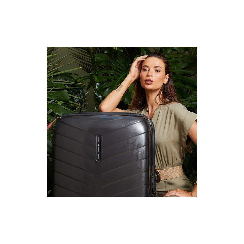 Exterior *Candado TSA integrado *Asa superior y lateral *Spinner 4 ruedas dobles *Ruedas de suspensión amortiguadoras de golpes y sonidos *Expandible *Etiqueta de identificador integrada Interior *Compartimento ingerior con cintas cruzadas *Separador interno en compartimento superior con bolsillo *El forro interior y la malla del bolsillo interior están fabricados con telas recicladas RPET con el equivalente a 5 botellas PET recicladas (0,5l - 20g)