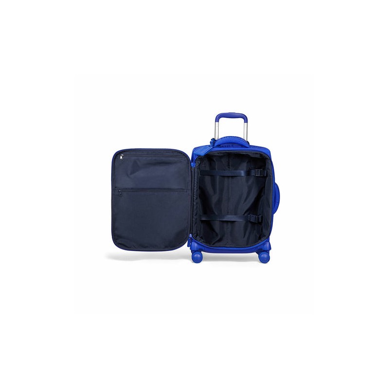 • Fabricada en resistente poliamida y poliéster. • Sistema spinner de 8 ruedas. • Carro con botón liberador y ajuste de posiciones. • Cómoda asa superior y lateral. • Etiqueta de identificación. • Incluye candado TSA.